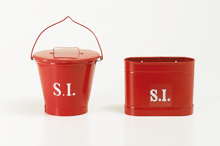 Balde oval ou redondo, com ou sem tampa, para 5L de areia. Caixa de 100L, com ou sem tampa, pá e rodízios. Acabado em tinta